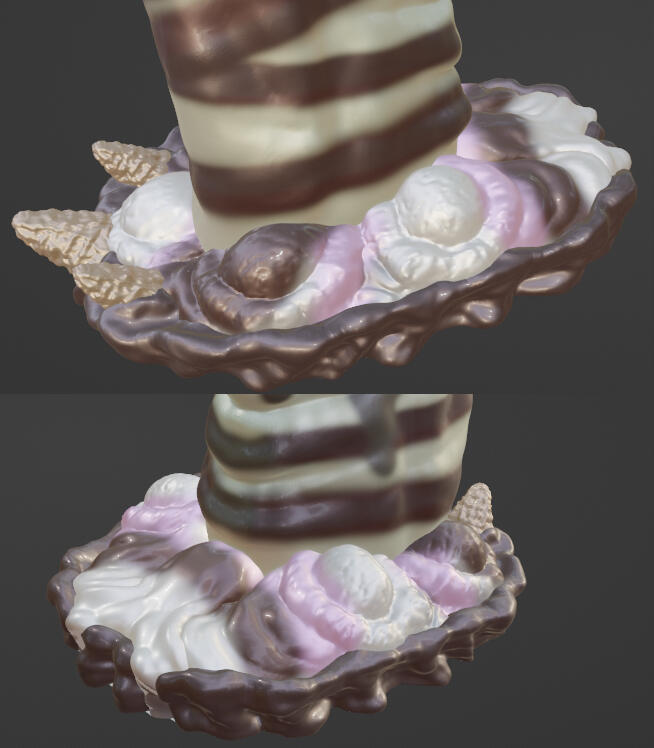 The "cherry" on top and ice cream cone spines on the back can be removed if preferred.
